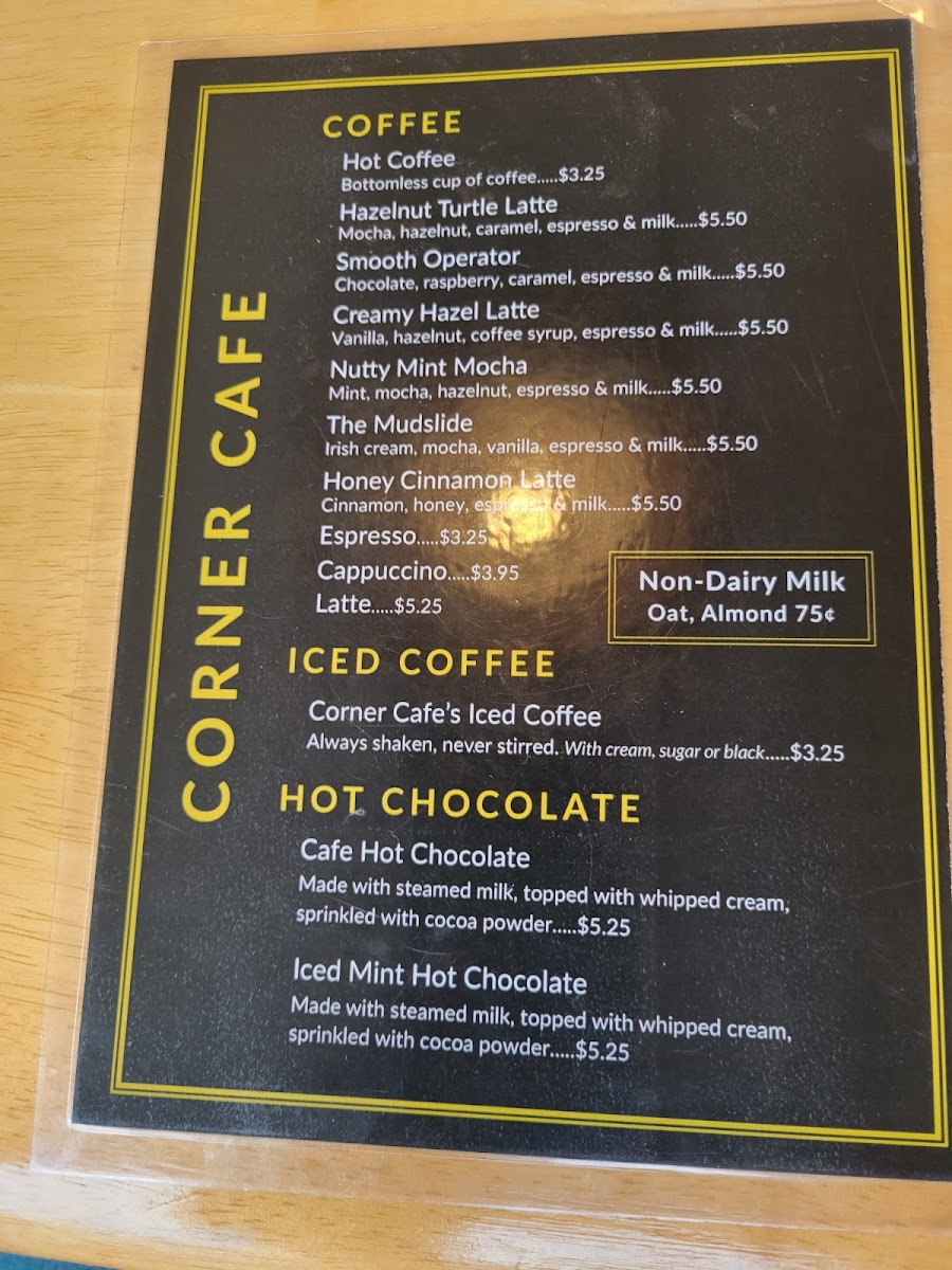 Corner Café offers a straightforward and inviting menu featuring casual café fare and comforting drinks ideal for starting your day or grabbing a relaxed lunch. The variety ranges from hearty breakfast plates to simple sandwiches and light takeout options, all reflecting a down-to-earth approach to dining.